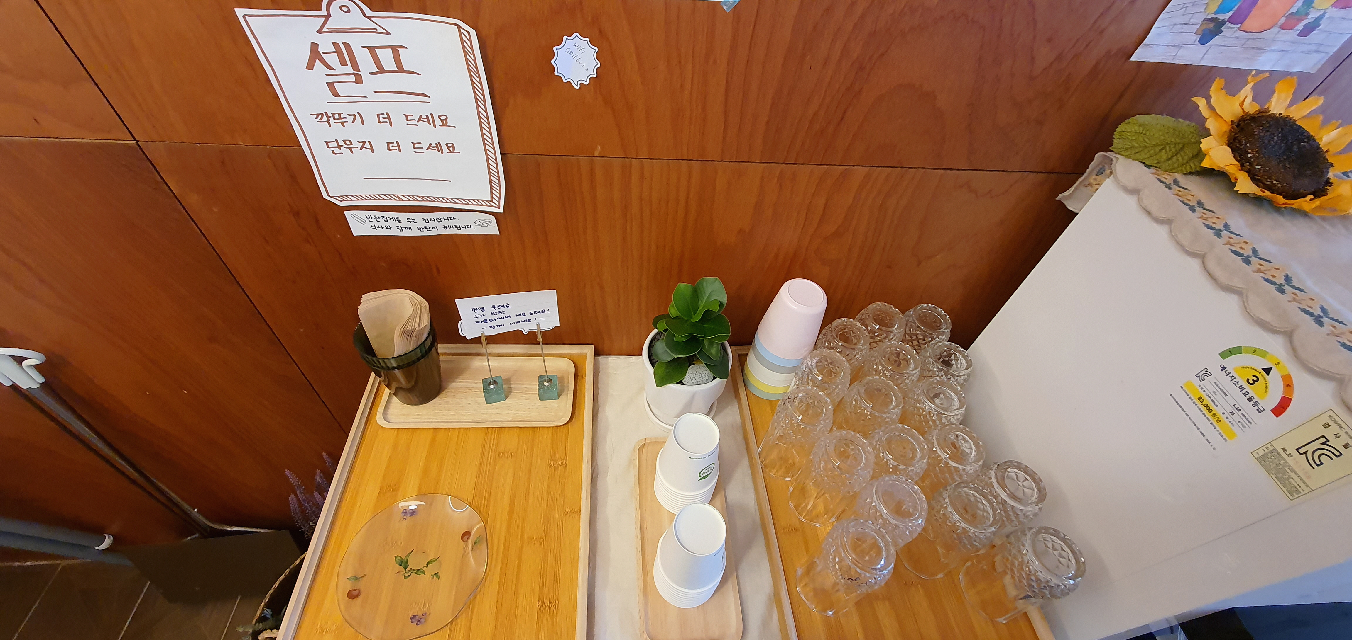 종이컵과 유리컵을 각각 준비해두셨습니다.